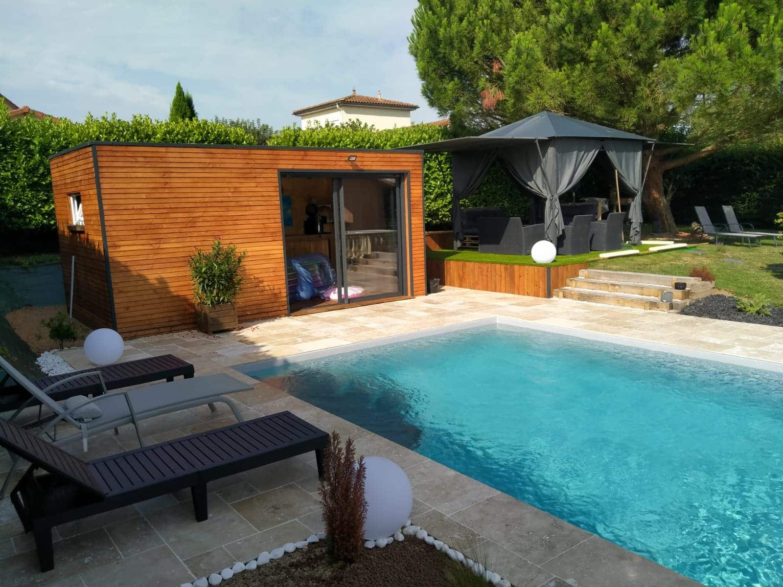 Les pool house sont de plus en plus de plus en plus populaires pour valoriser votre espace bien-être. Selon le budget, il peut-être conçu à l’aide de différents matériaux (bois, maçonné, métal,…) et de la taille souhaitée.