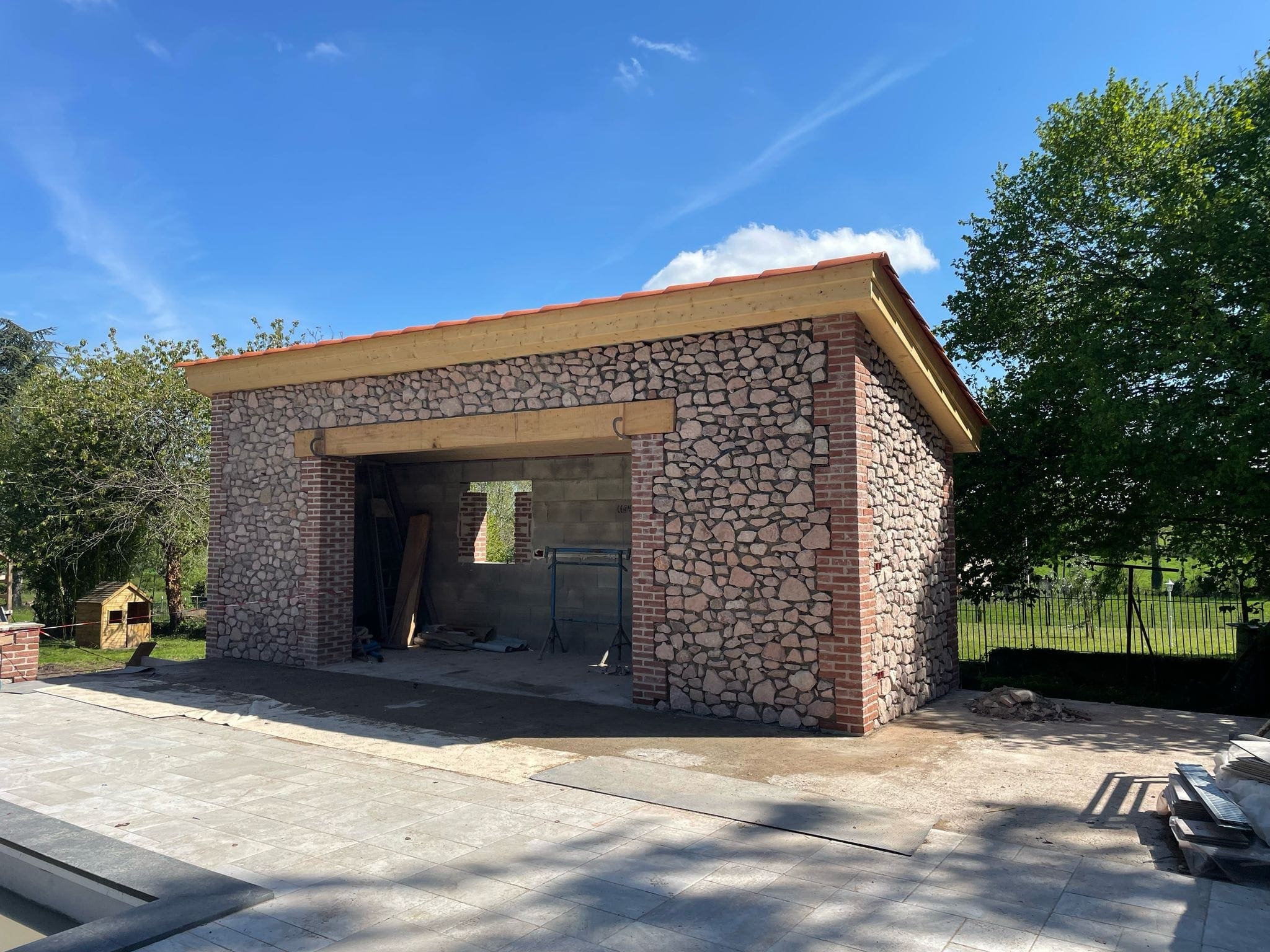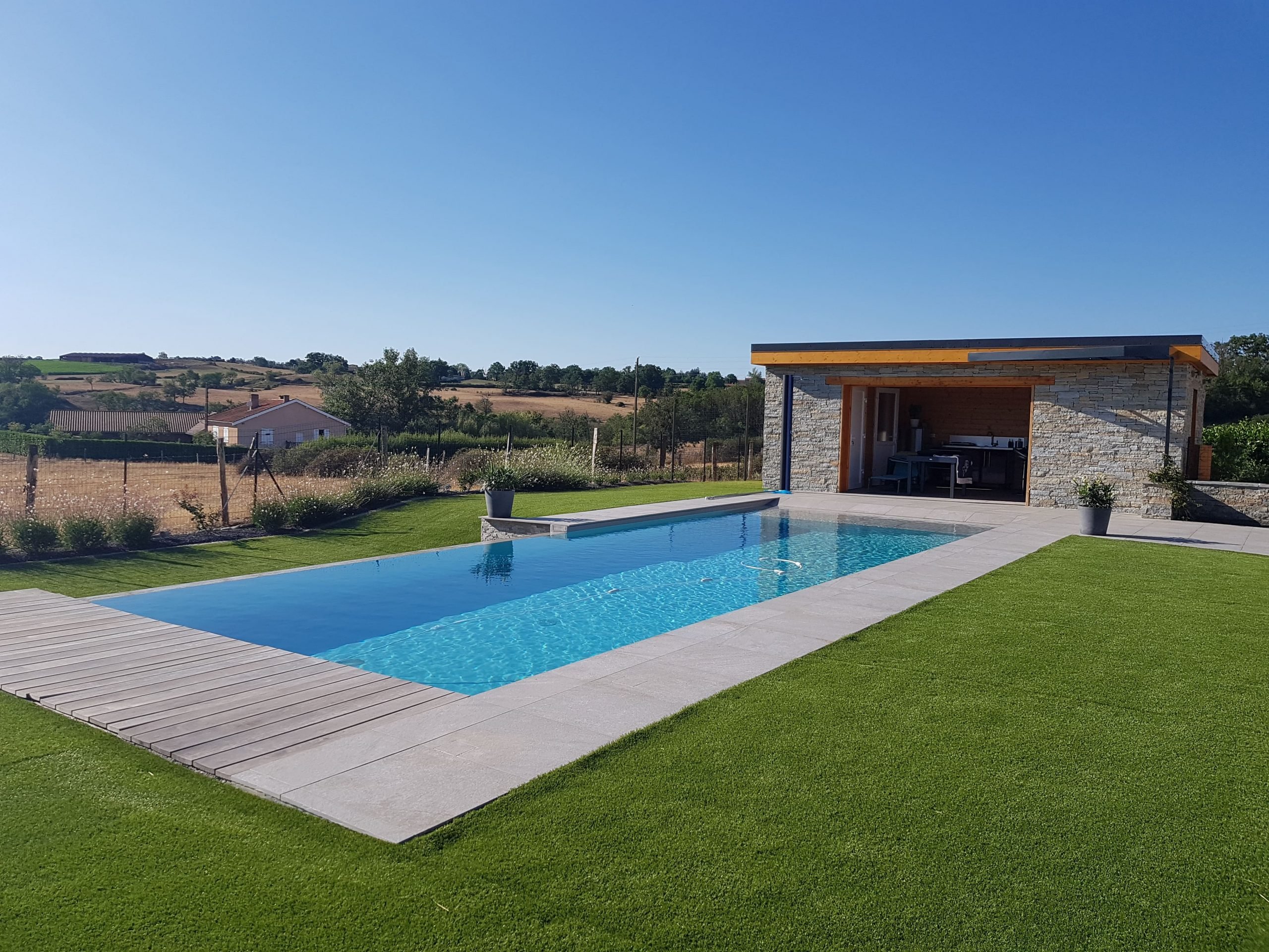 Cette construction annexe, située à proximité de la piscine, peut avoir plusieurs fonctions, selon sa taille : Local technique, vestiaire/douche, toilettes extérieures, coin détente, cuisine d’été, etc…